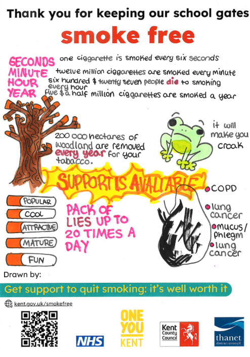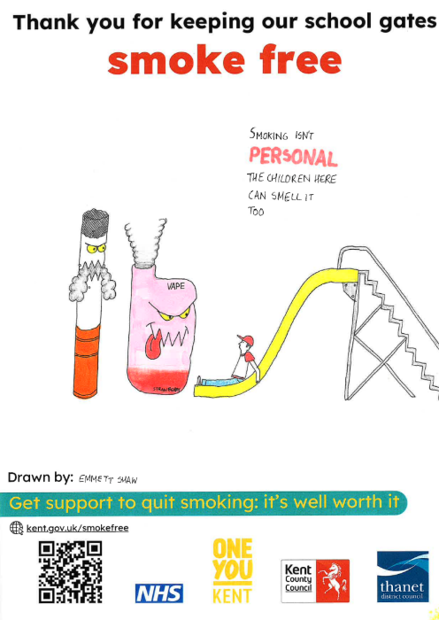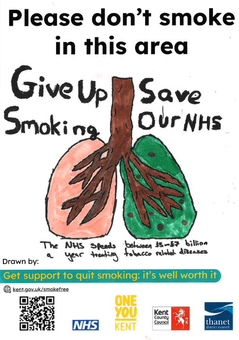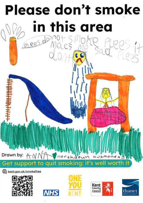 In 2025, we received funding from Kent County Council’s Smokefree Spaces scheme to design and display “Smoke-Free” signs in Ramsgate High Street and seven play parks across the district.