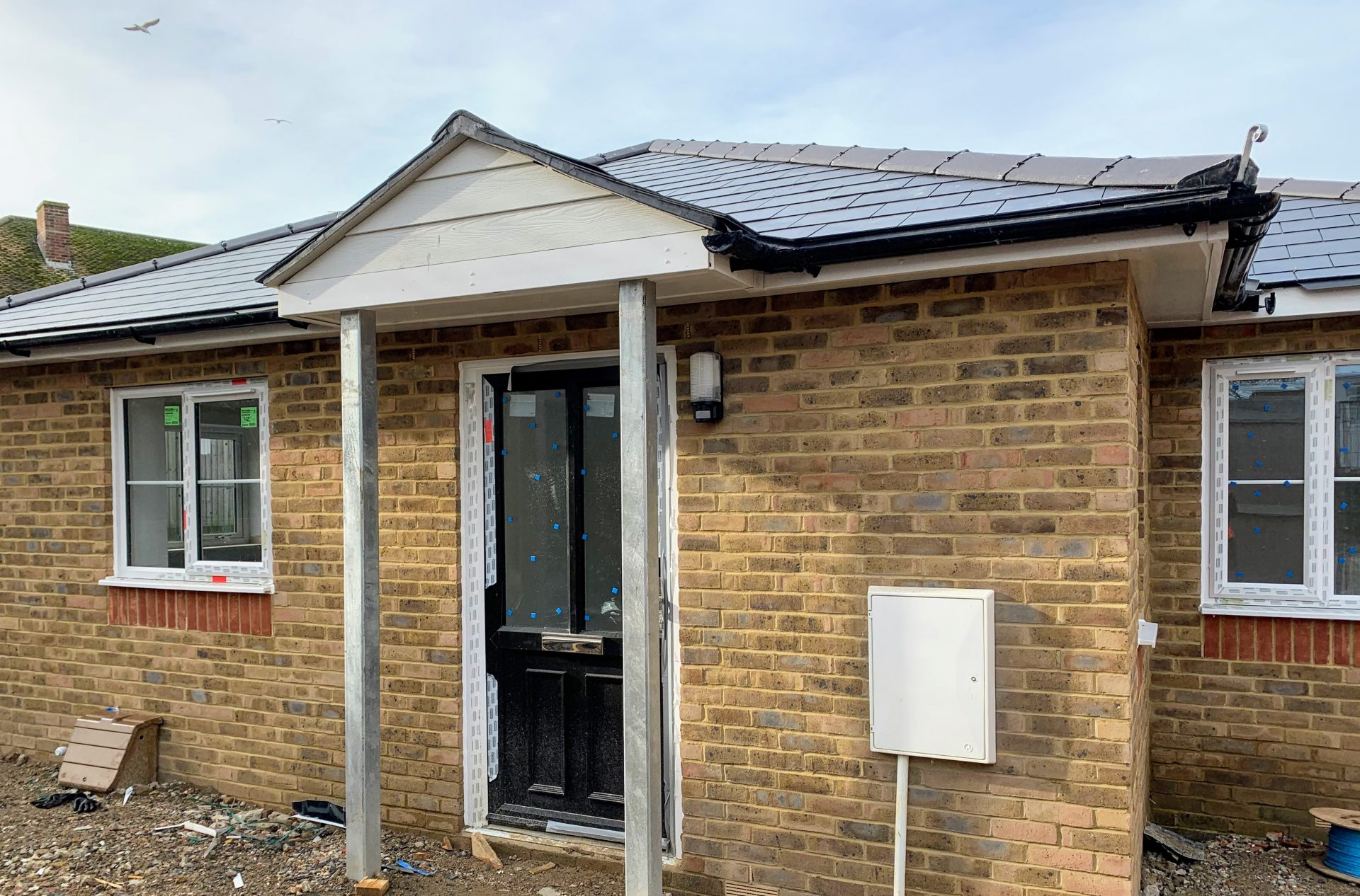 This infill site has been developed to provide one family house, and one bungalow for two people.