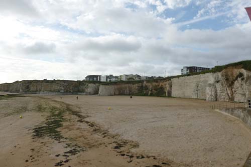 This sandy bay runs between Walpole Bay and Botany Bay and is accessible via two steep slopes. The cliffs have a concrete seawall that runs up to Foreness Point. The area has sand and chalk reef visible at low tide, but at high tide there is very little sand visible.