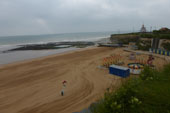Viking Bay is the main bay for Broadstairs. This bay has a large expanse of sand visible at high tide. There is a short harbour/pier to one side and a tidal pool at the other. The bay has a wooden board walk which leads from Harbour Street in front of The Pavilion and across to the first set of steps which lead from the promenade on top of the cliff to the bay. On the sand during the summer months there are cafés and an ice cream kiosk open daily, and on weekends towards either end of the summer season. There is also a children’s play area.