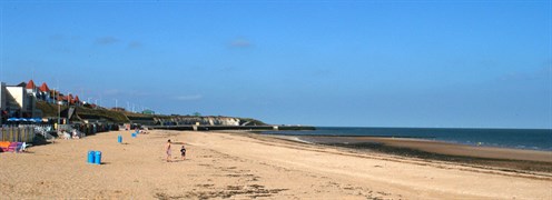 This blue flag beach has sand exposed at high tide and has a designated water ski area. Nearby is an adventure golf course (Strokes) which is situated on the promenade/sea wall. This bay has beach huts during the summer months but they are removed from September. There are Sunken Gardens which were originally designed and laid out during 1930’s the layout has remained but the planting is not per the original design.
