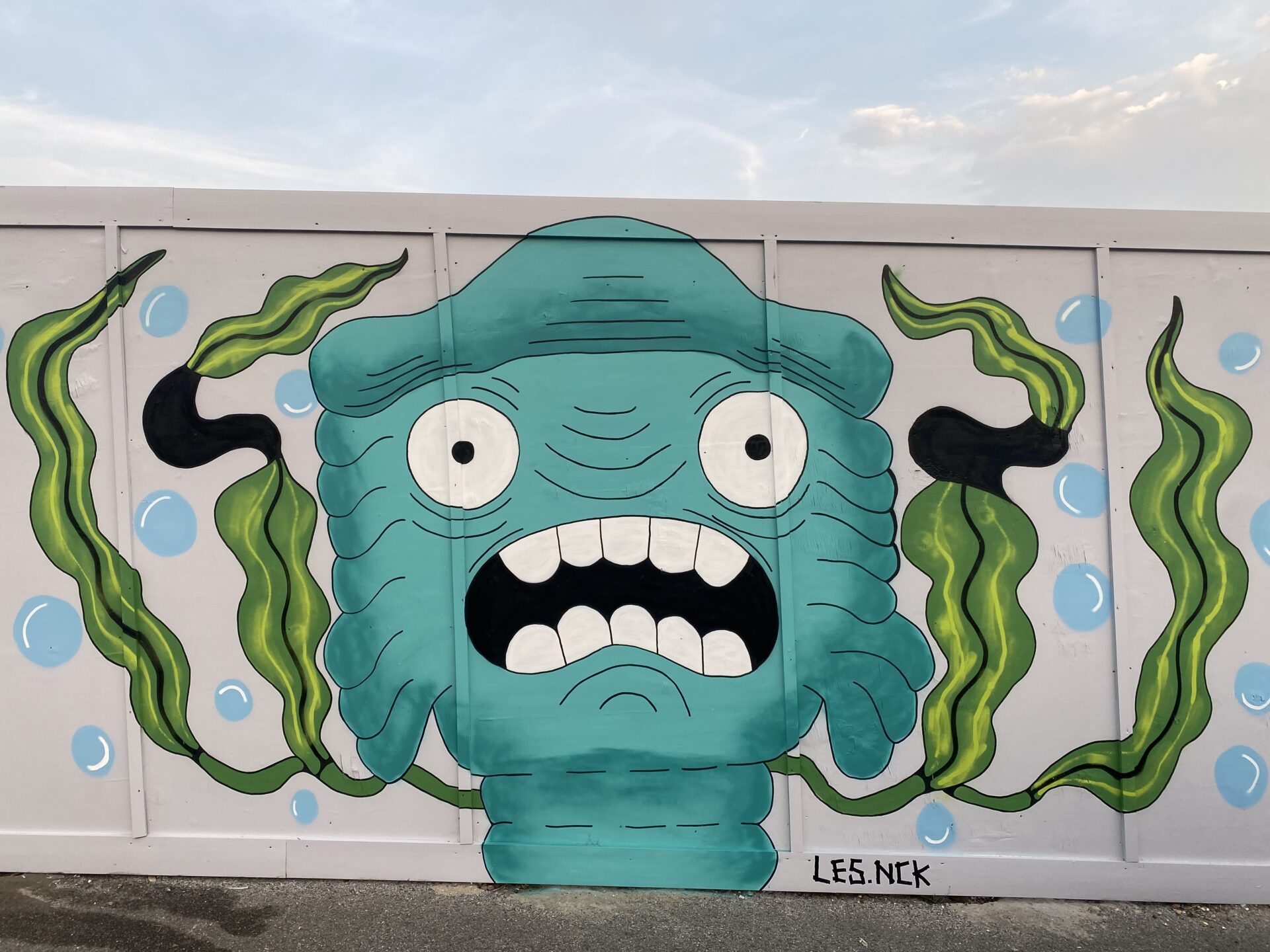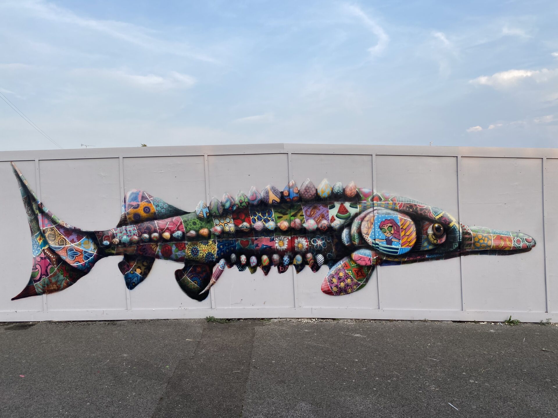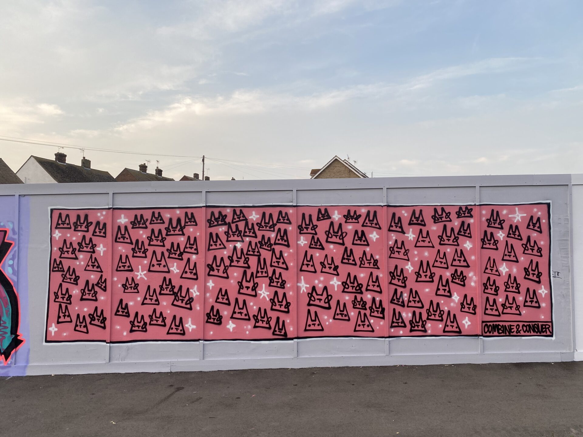 Over the weekend of Saturday 31 August – Sunday 1 September, seven local artists painted the hoardings surrounding the Dane Valley development in Margate. The hoardings had previously been defaced with unsightly graffiti and tagging. Residents and the local community were involved, suggesting themes and taking part in selecting the colour palette for the works.