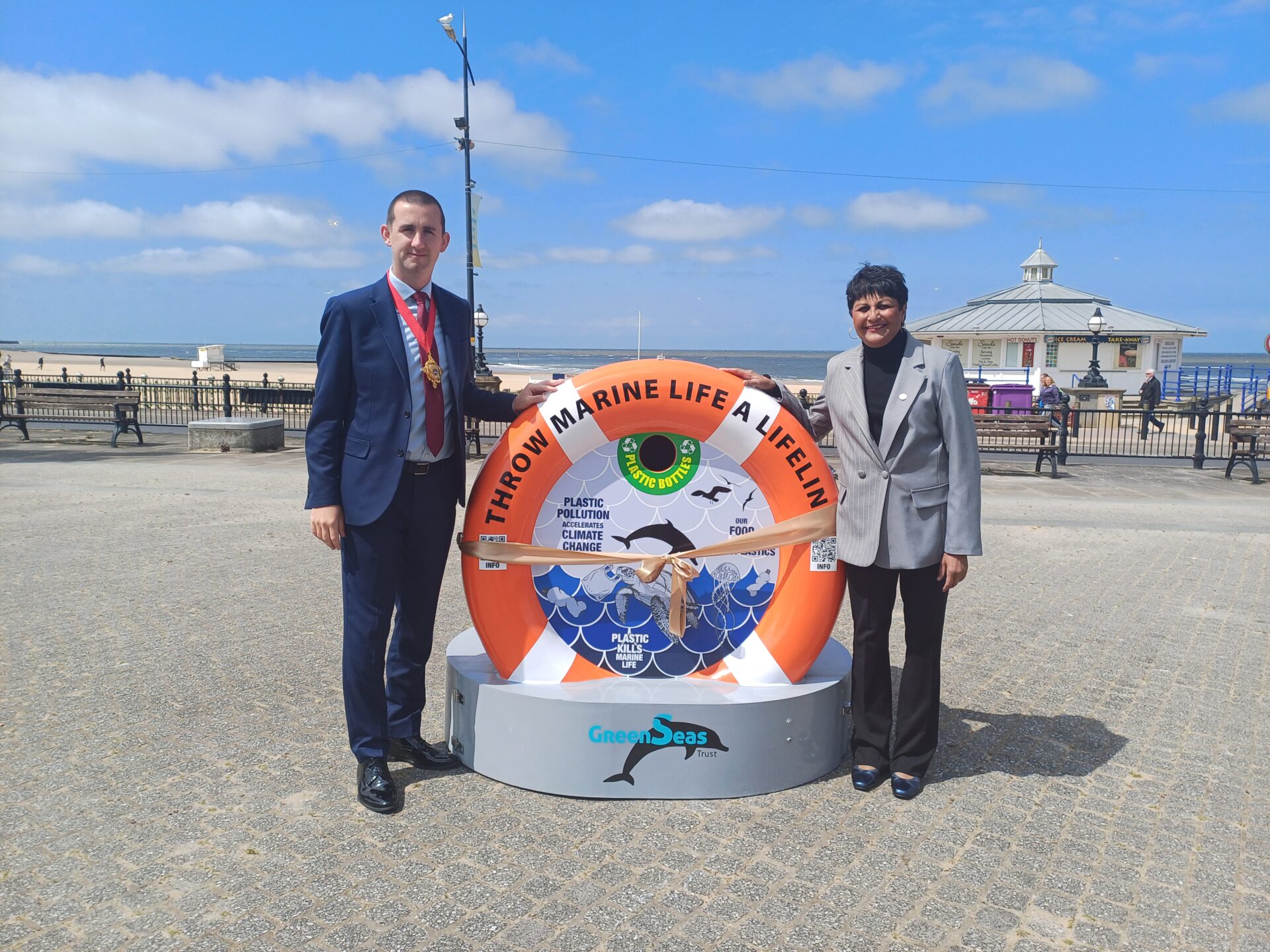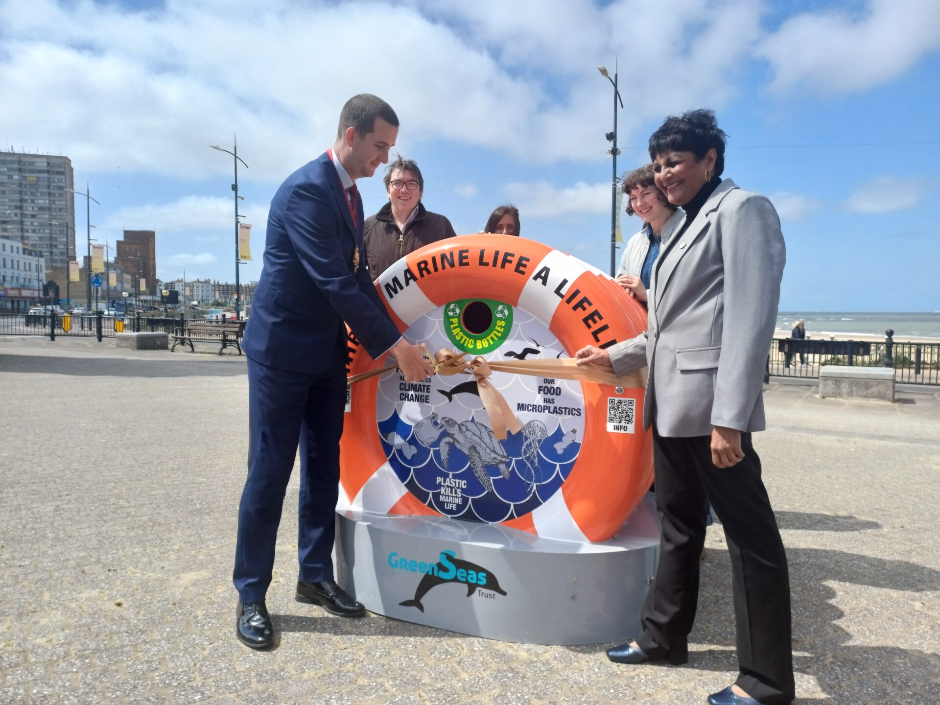 The colourful BinForGreenSeas was officially launched on Thursday 8 May 2025, at a ceremony attended by the Mayor of Margate, council officers, and representatives from environmental charity GreenSeas Trust, who funded the bin.
